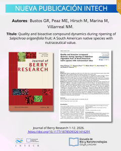 Bustos GR, Peaz ME, Hirsch M, Marina M, Villarreal NM. Quality and bioactive compound dynamics during ripening of Salpichroa origanifolia fruit: A South American native species with nutraceutical value. Journal of Berry Research 2026. https://doi.org/10.1177/18785093261416291