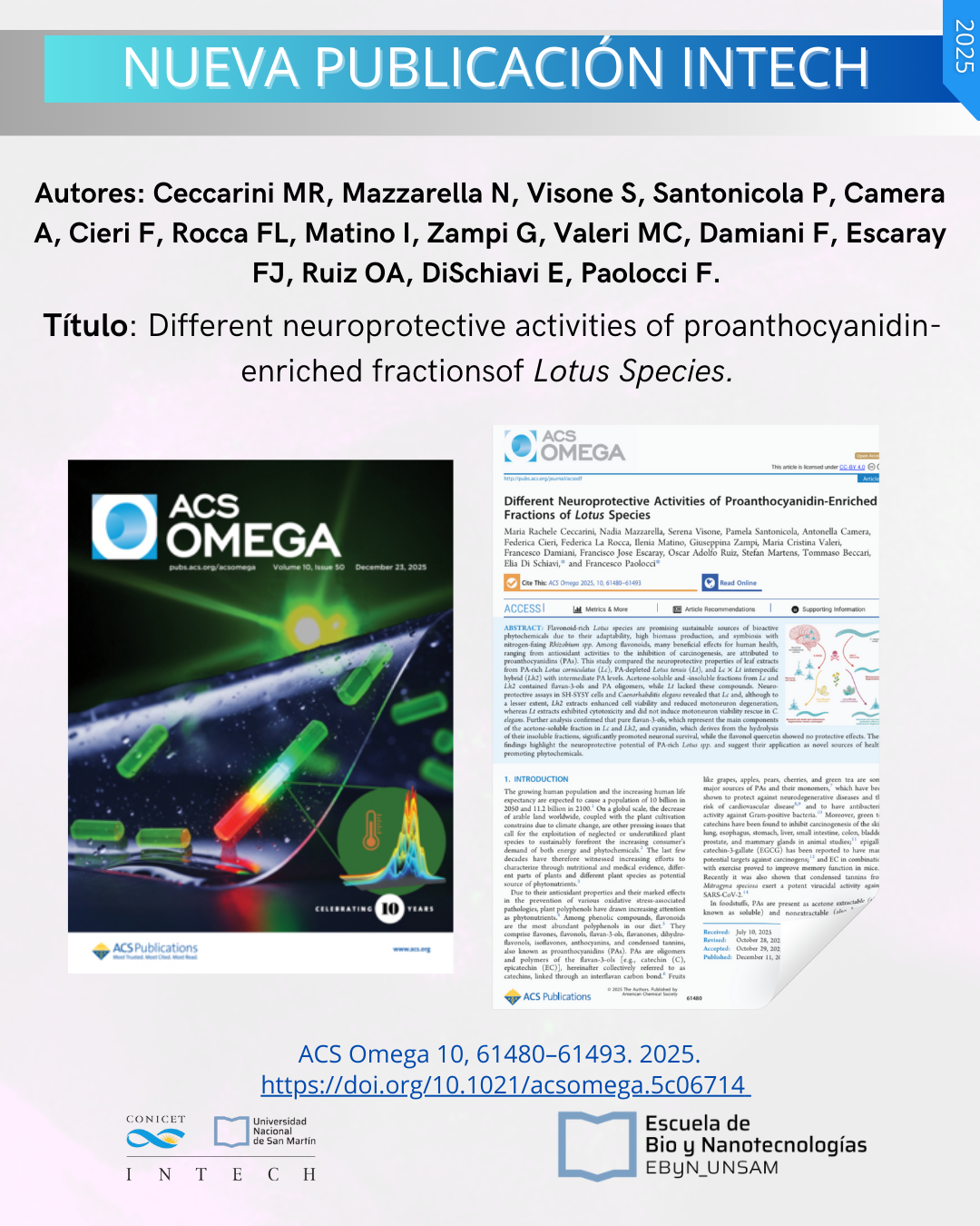 Nueva publicación: Different neuroprotective activities of proanthocyanidin-enriched fractionsof Lotus Species.