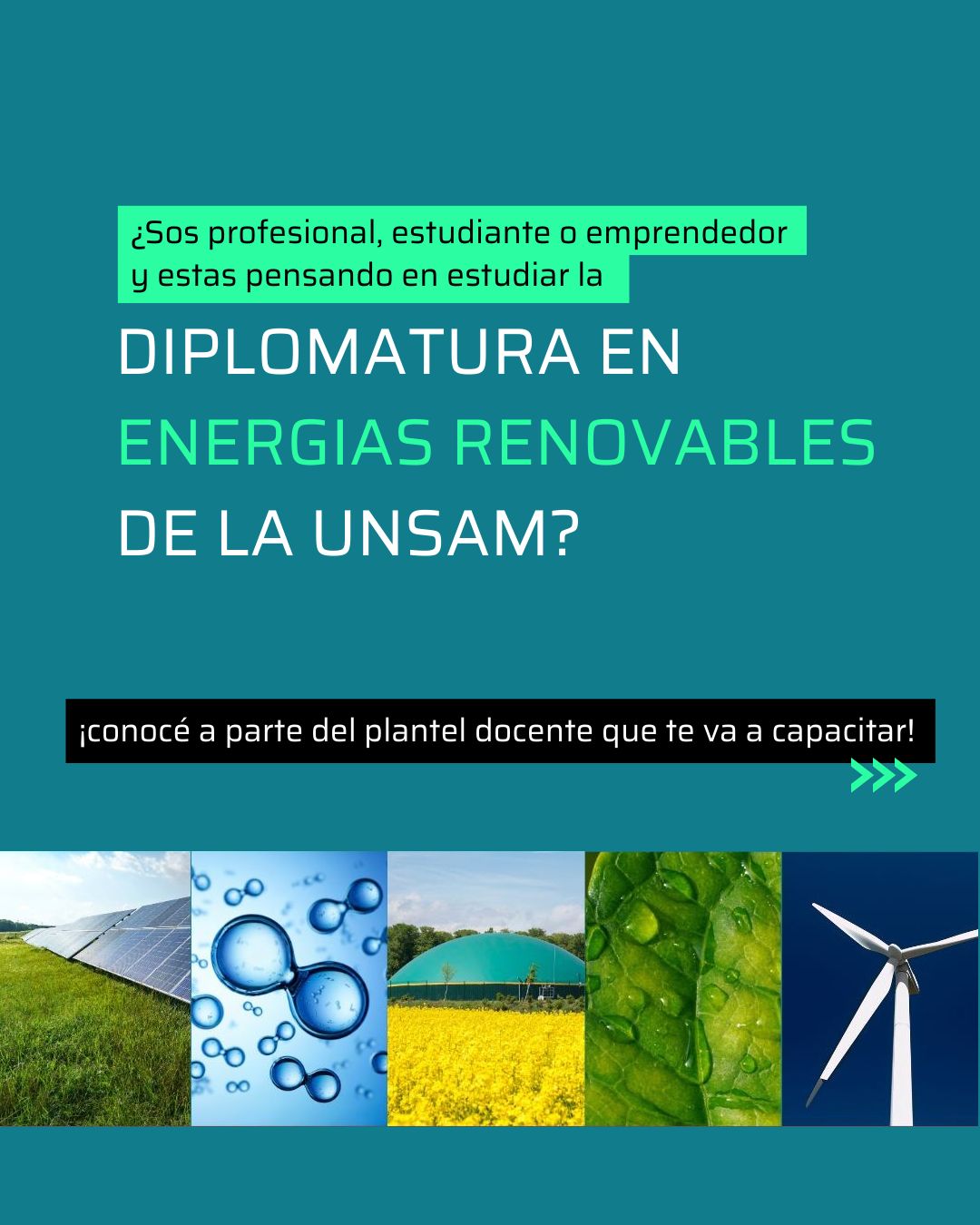 La nueva Diplomatura en Energías Renovables de la UNSAM cuenta con un equipo docente integrado por investigadoras e investigadores del CONICET, docentes universitarios y referentes del sector productivo y energético.